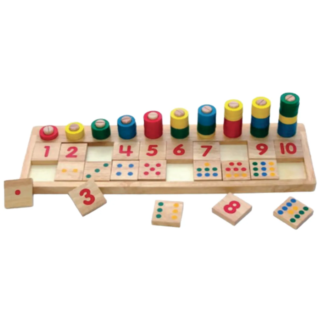 O Ábaco de 1 a 10 é um brinquedo educativo confeccionado em Madeira MDF com base em Madeira Pinus, projetado para ensinar contagem, números e quantidades de forma lúdica e interativa. Possui dez varetas fixas e 55 argolas de madeira, permitindo que a criança desenvolva habilidades matemáticas básicas enquanto brinca. Produto 100% artesanal e pintado com tinta à base de água, seguro para crianças.