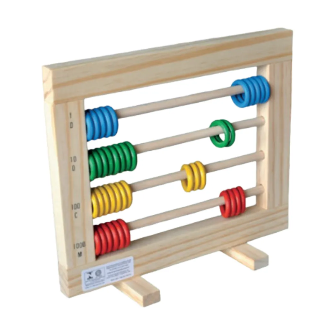 O Ábaco Fechado é um brinquedo educativo em Madeira Pinus, ideal para ensinar contagem, dezenas, centenas e milhar de maneira prática e divertida. Cada base contém quatro varetas fixas com argolas de madeira, facilitando o aprendizado da matemática básica. Produto 100% artesanal e pintado com tinta à base de água, seguro para crianças.