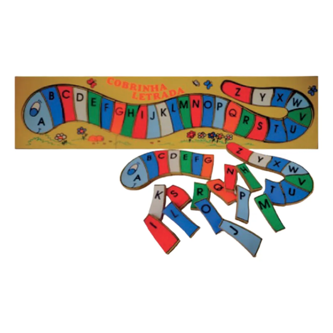 A Cobrinha Letrada é um brinquedo educativo confeccionado em MDF 3mm com fundo em compensado, contendo 26 recortes para encaixe, representando todas as letras do alfabeto. Cada peça é serigrafada com a letra correspondente, utilizando tinta à base de água, garantindo segurança e durabilidade. Produto 100% artesanal, ideal para o desenvolvimento da alfabetização, coordenação motora e reconhecimento de letras de forma lúdica.