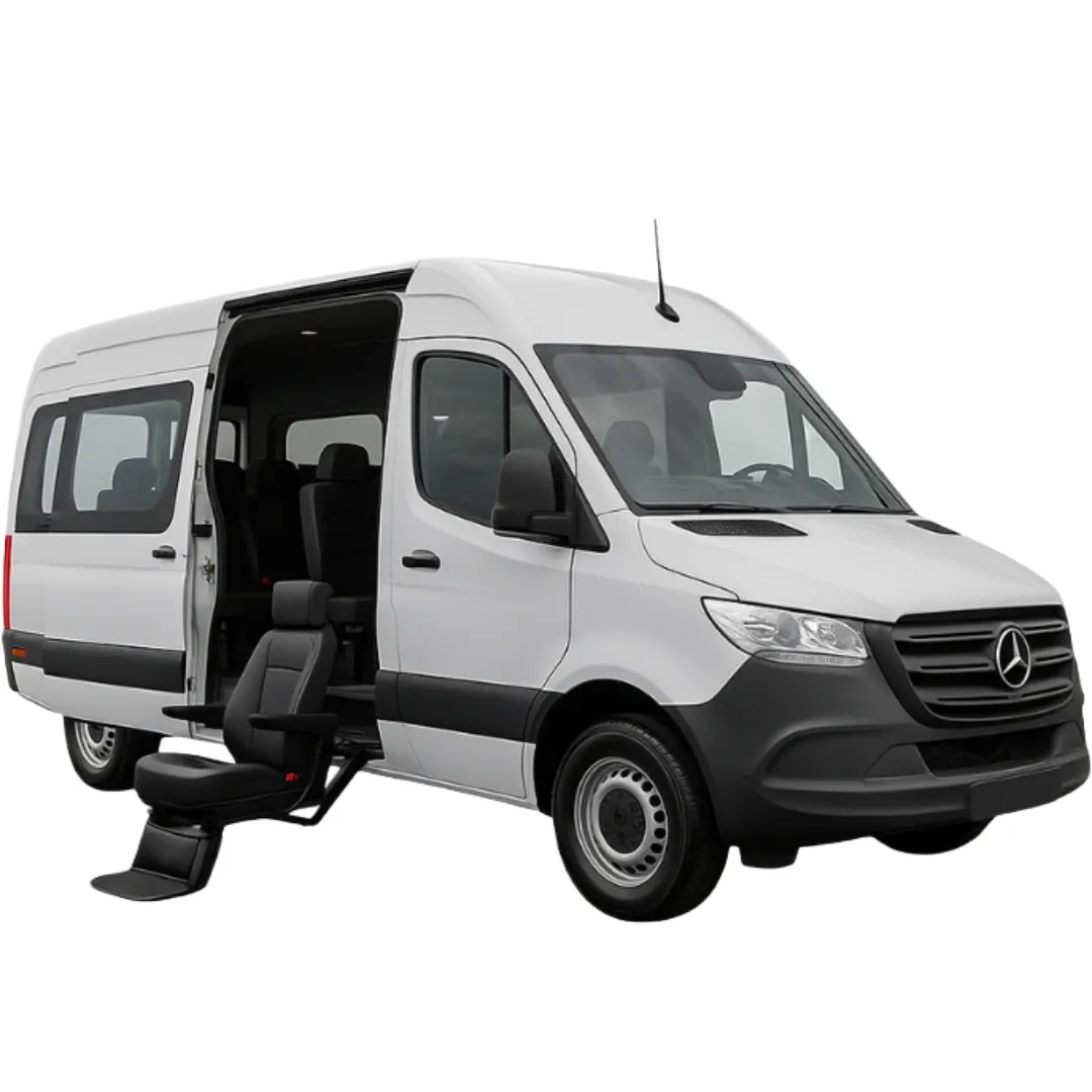 Com capacidade para 15 passageiros + motorista, a Sprinter oferece excelente ergonomia, amplo espaço interno, climatização eficiente e acabamento premium. O DPM (Dispositivo de Poltrona Móvel) garante acessibilidade completa, facilitando o embarque e desembarque de pessoas com mobilidade reduzida, atendendo às normas vigentes.