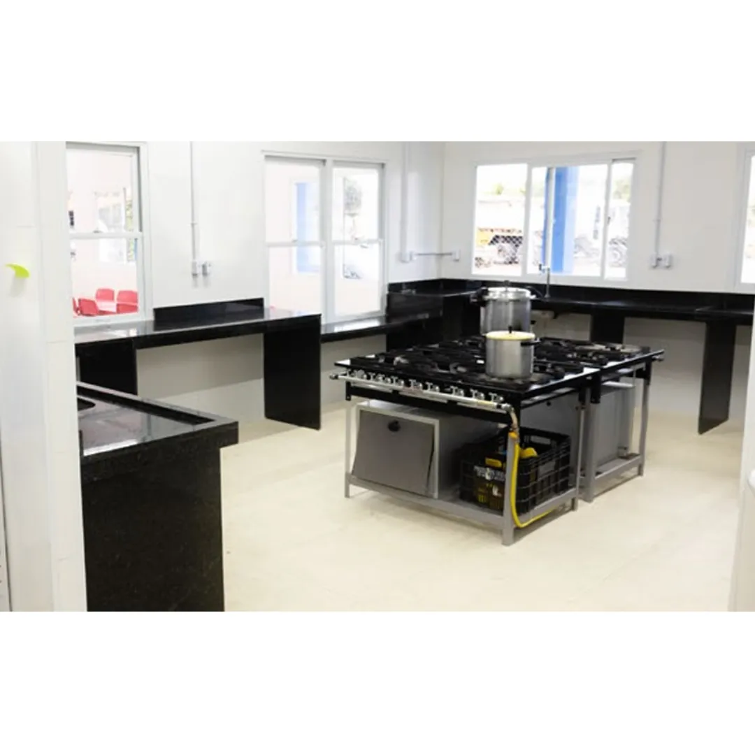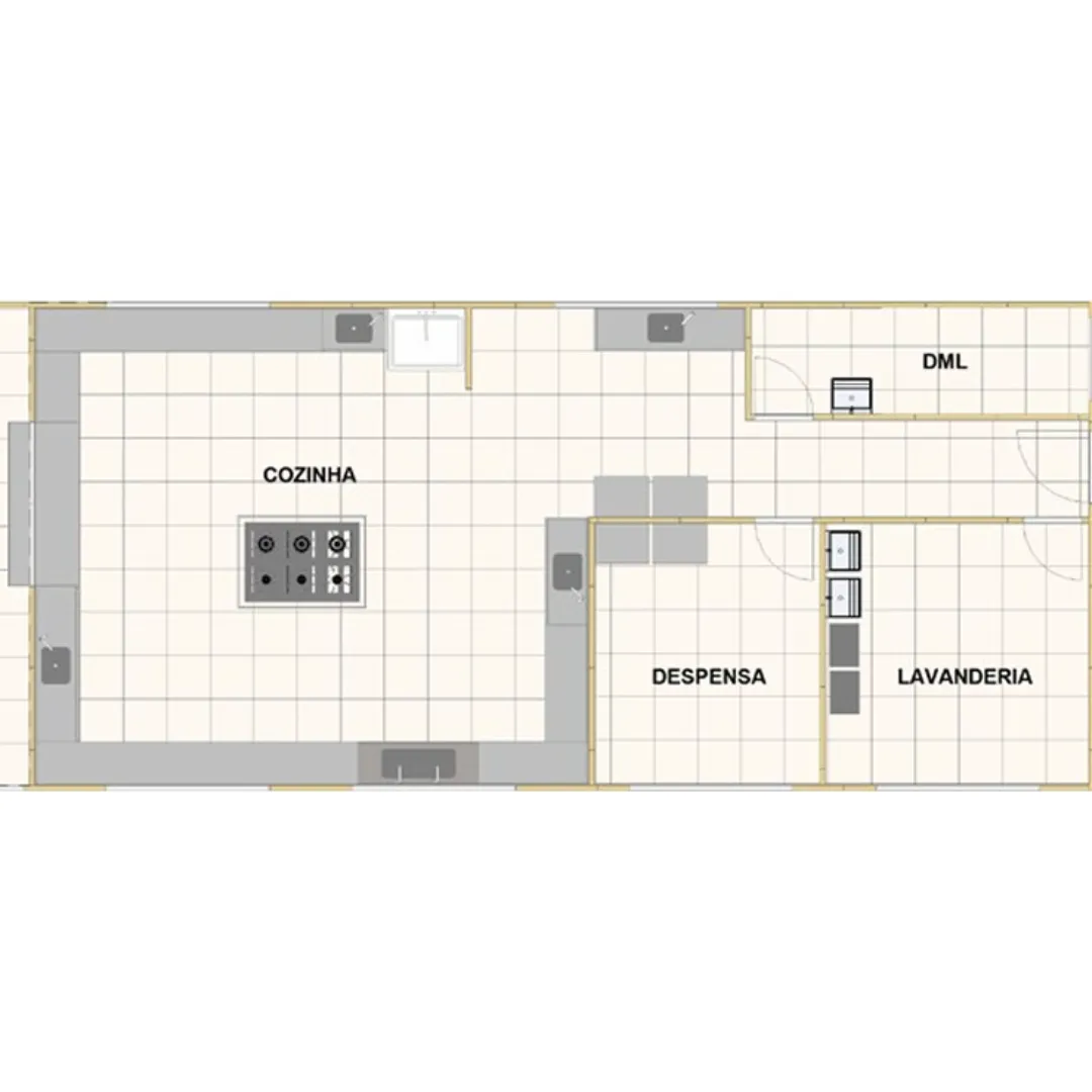 Ideal para cozinhas, áreas de apoio, lavanderias e espaços de manutenção, o módulo oferece acabamentos resistentes, layout otimizado e fácil adaptação conforme a necessidade do projeto, garantindo conforto e segurança aos usuários.