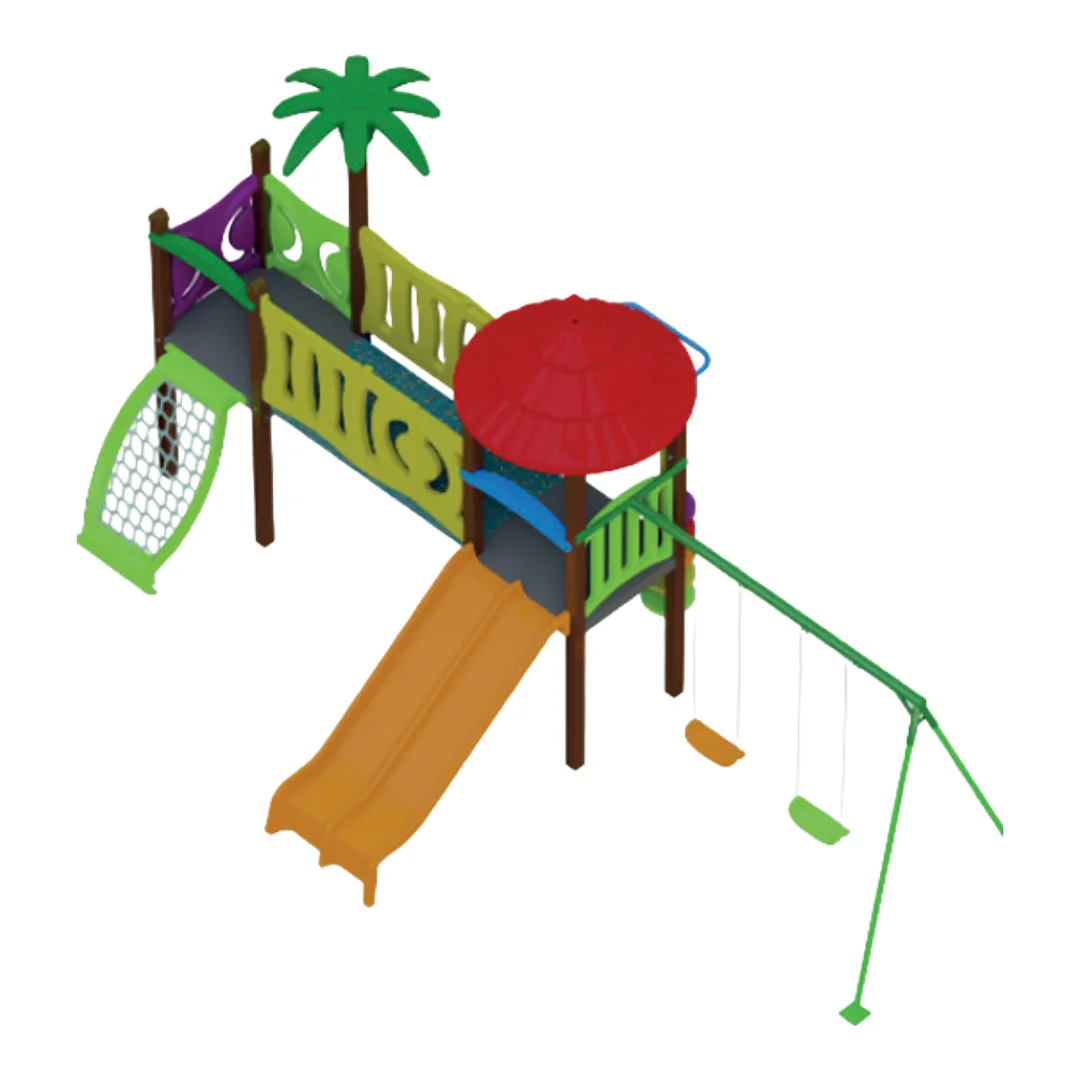 O Parque Infantil II oferece diversão completa e segura para crianças, combinando madeira plástica e plástico rotomoldado com acabamento resistente aos raios solares. Certificado pela ABNT NBR 16071-2:2021, garante segurança, acessibilidade e durabilidade.