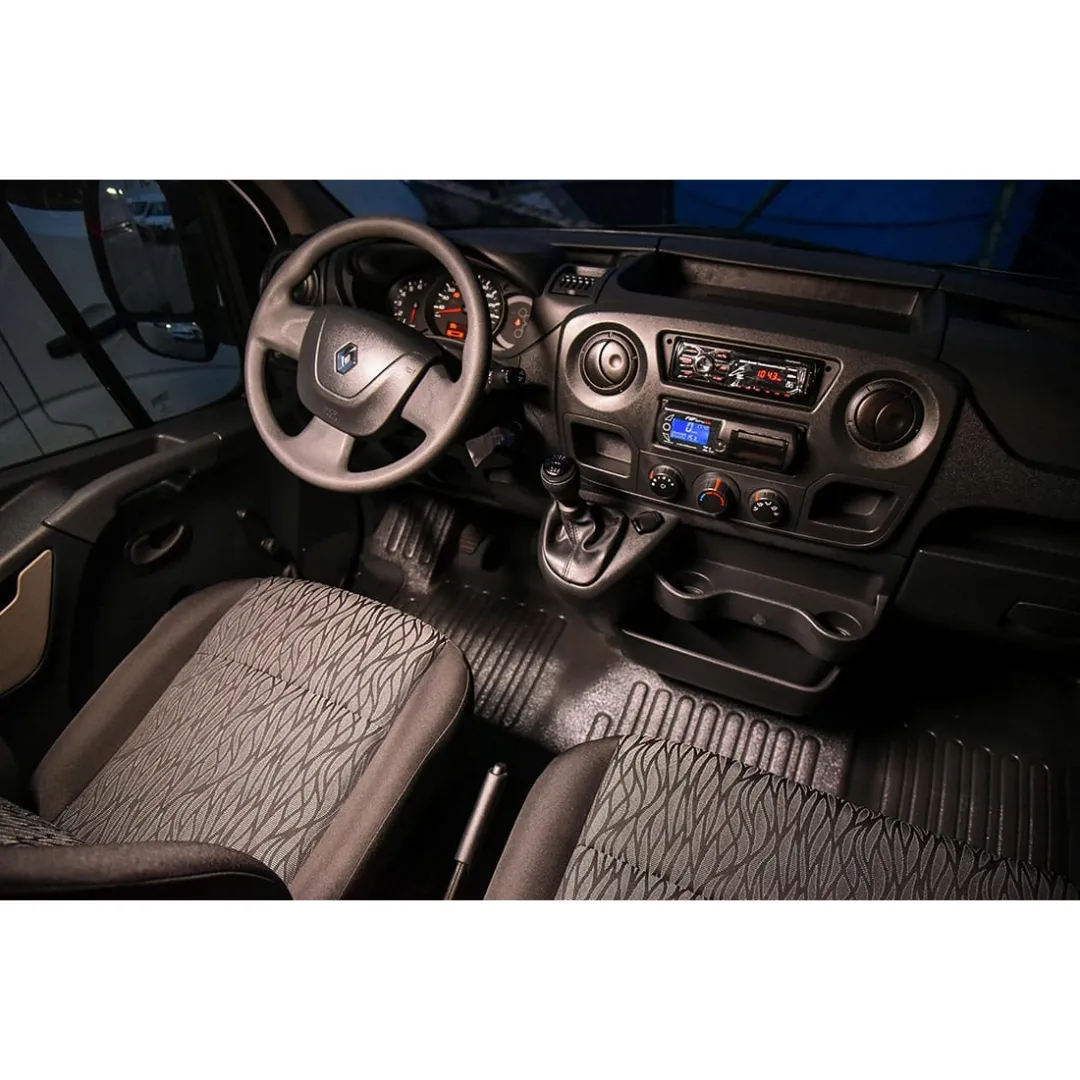O veículo é equipado com assentos ergonômicos, ventilação adequada e estrutura robusta, garantindo segurança e conforto para todos os passageiros, consolidando a Renault como referência em vans e veículos utilitários.